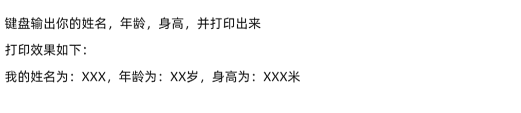 printf("名字为:%s,年龄为:%d,身高为:%.2lf", name, age, height);