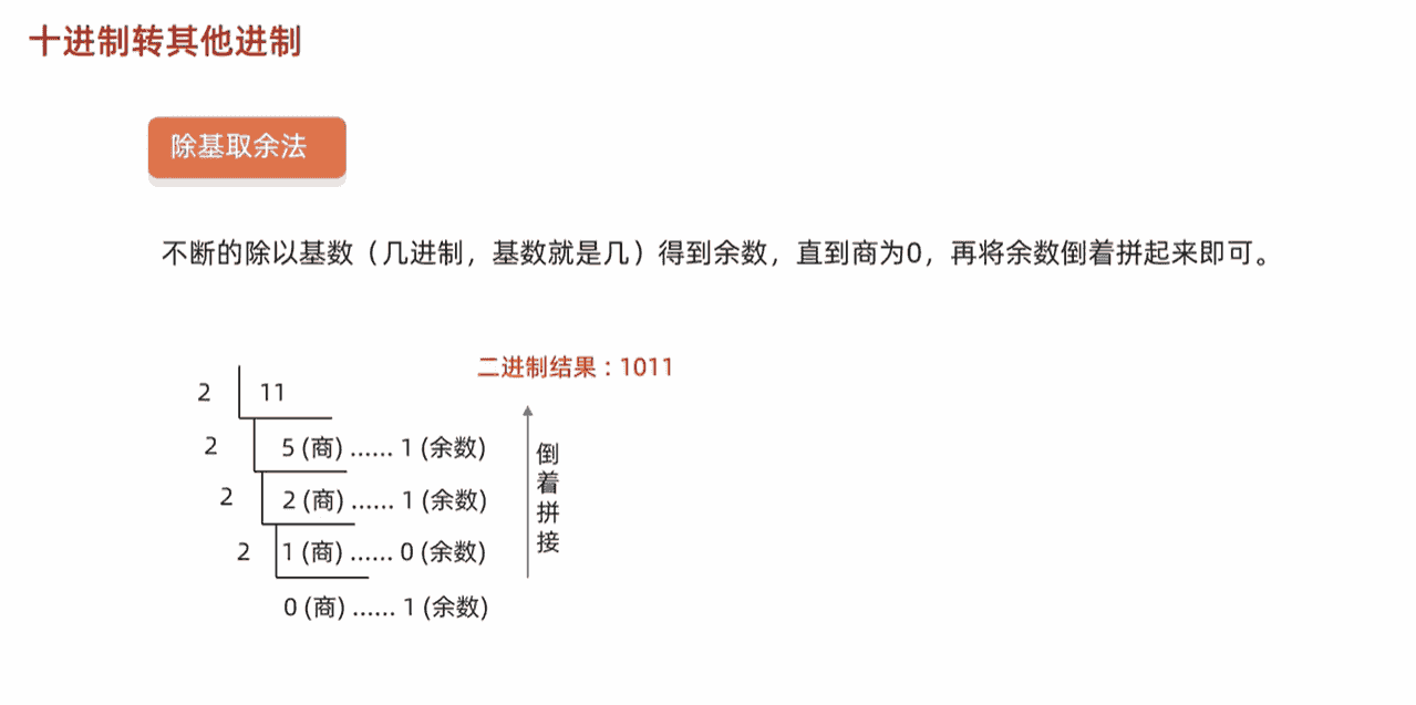 十进制转其他进制(转什么进制就除那个进制的进制数,比如十转二,就除2)