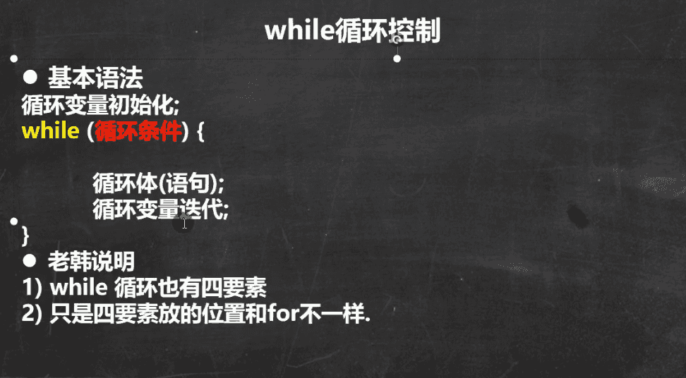 - 循环条件是返回一个布尔值的表达式,也就是说while( 这里面的值是一个布尔值,不能为别的值 )